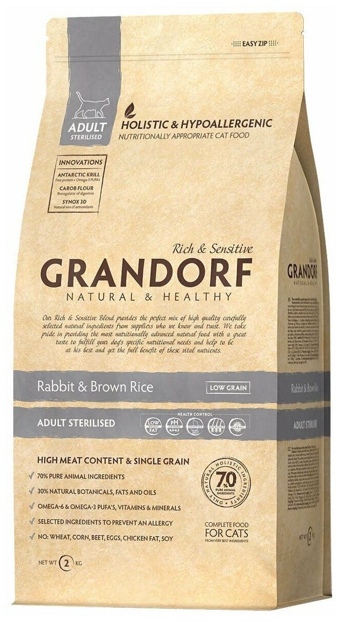 Купить Сухой корм для стерилизованных кошек Grandorf гипоаллергенный, с кроликом, с бурым рисом 2 кг
