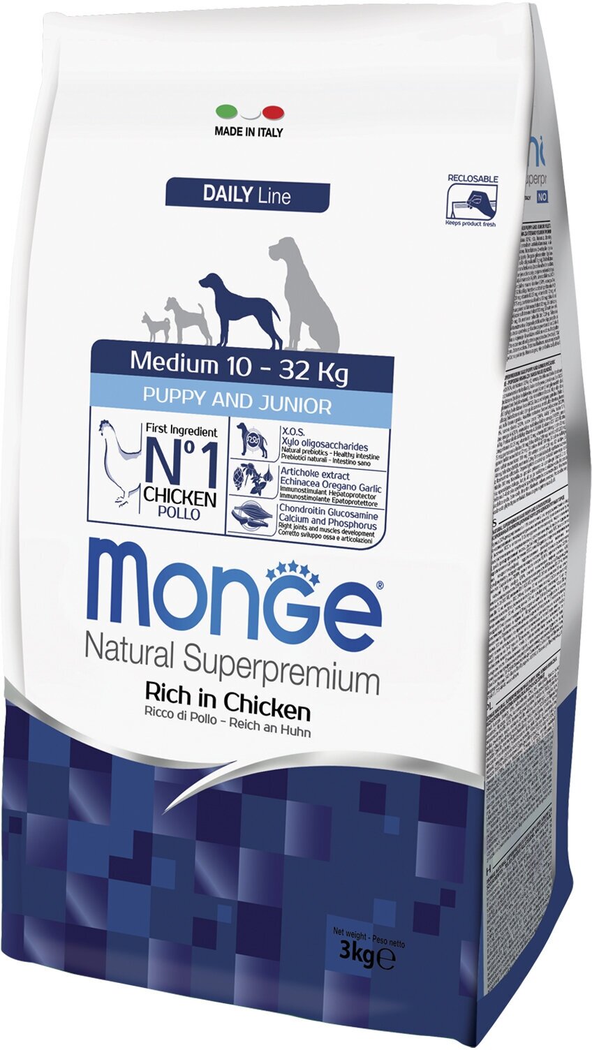 Сухой корм для щенков Monge Daily Line, курица 3 кг (для средних пород)