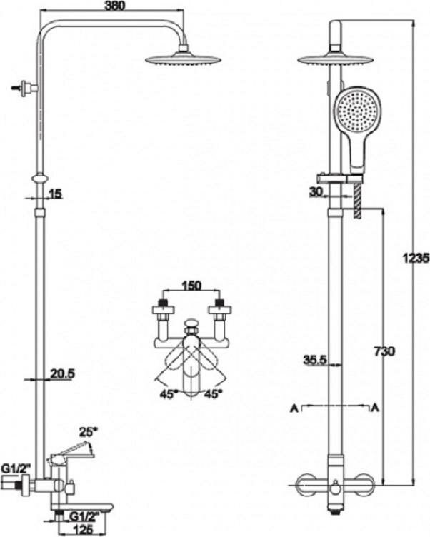 | Дополнительная информация | высота стойки для душа: 1235 мм |