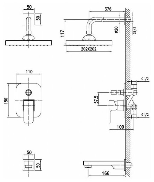 Смеситель скрытого монтажа KAISER Sonat - 34322 (с верхним душем и изливом)