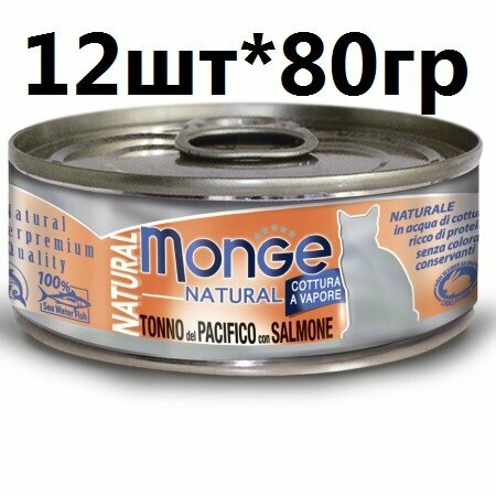 Monge Cat Natural консервы для кошек тихоокеанский тунец с лососем 80г х 12 шт.