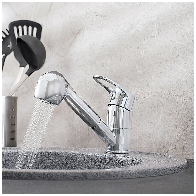 Смеситель для кухни, РМС SL52-014, выдвижной излив, с насадкой, однорычажный, гарантия