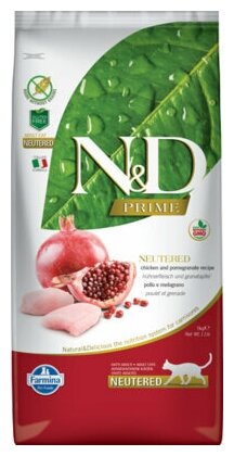 Farmina N&D PRIME CAT NEUTERED CHICKEN & POMEGRANATE ADULT для стерилизованных кошек и кастрированных котов 10 кг
