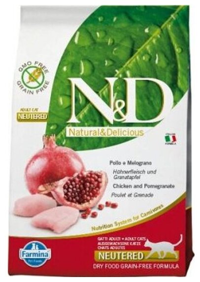 Корм для кошек сухой N&D Prime / Фармина Cat Chicken & Pomegranate Neutered Adult беззерновой для взрослых стерилизованных животных всех пород,