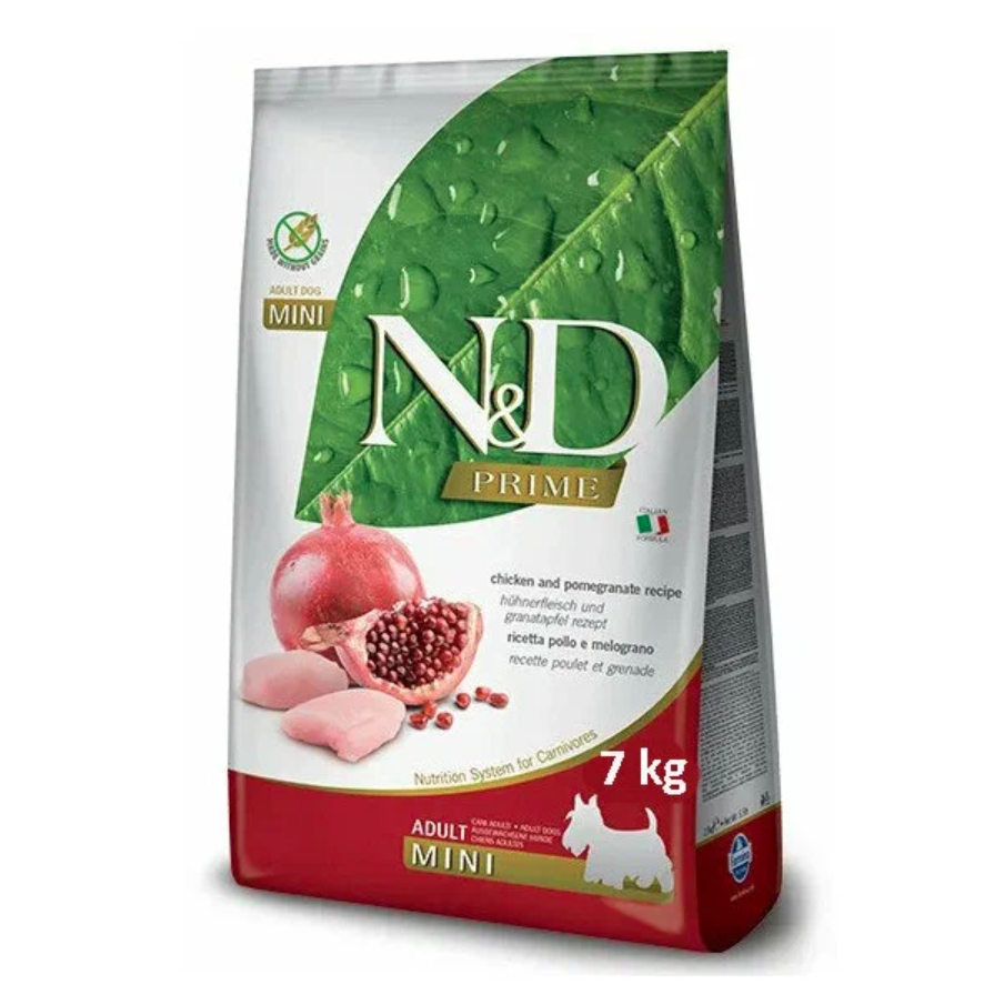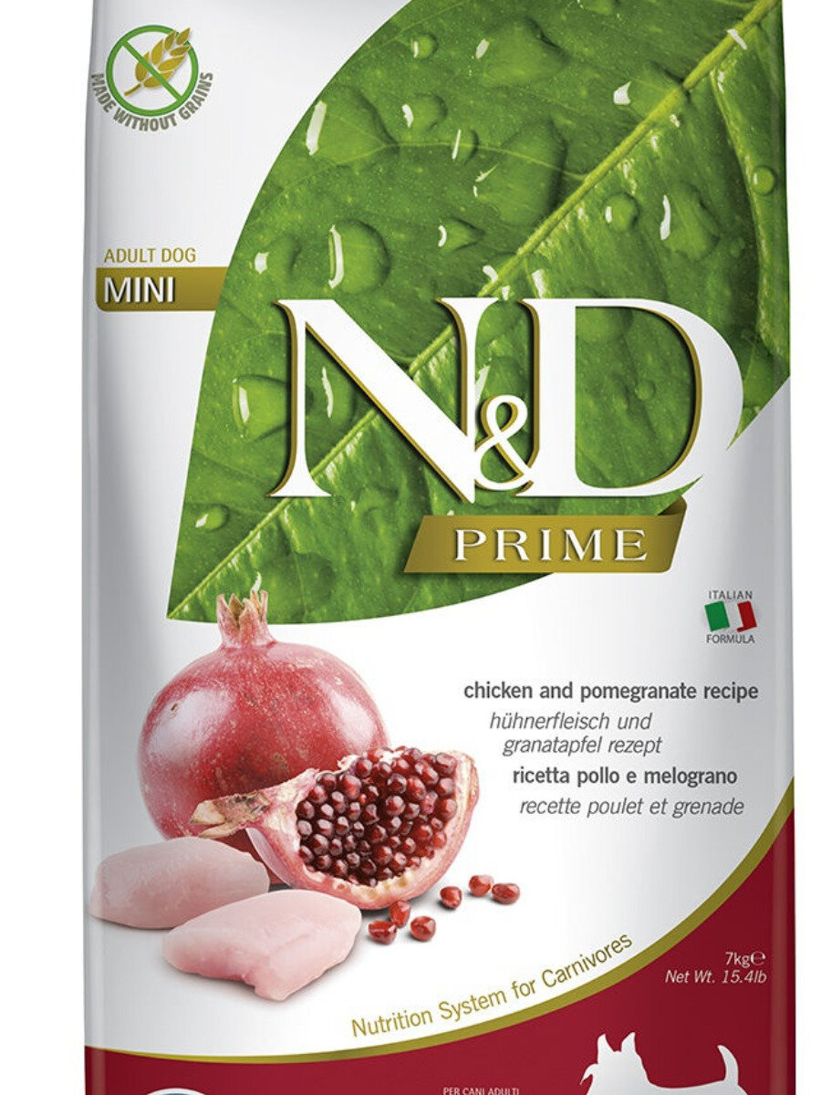 Корм Farmina N&D PRIME Chicken & Pomegranate Adult Mini беззерновой для взрослых собак мелких пород курица с гранатом, 7 кг