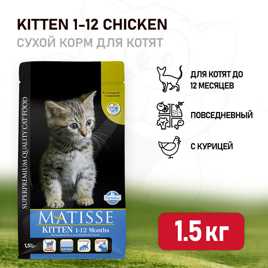 Сухой корм Farmina Matisse Kitten 1-12 month, для котят, курица, 1,5 кг