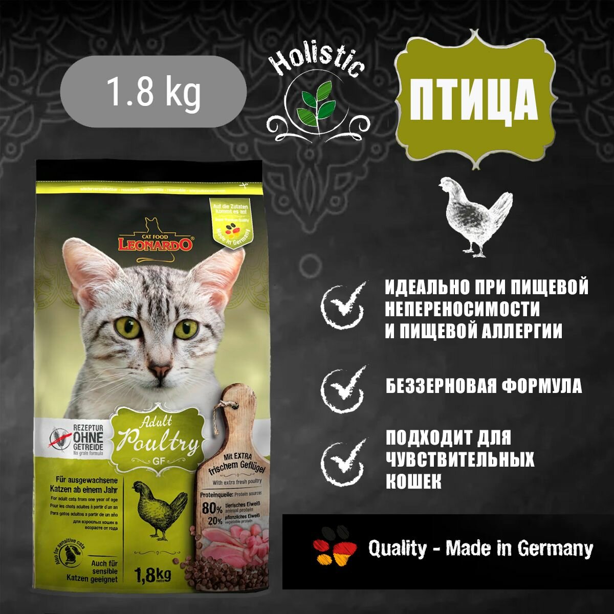 Сухой корм для кошек Leonardo беззерновой, с домашней птицей 1.8 кг интересное: