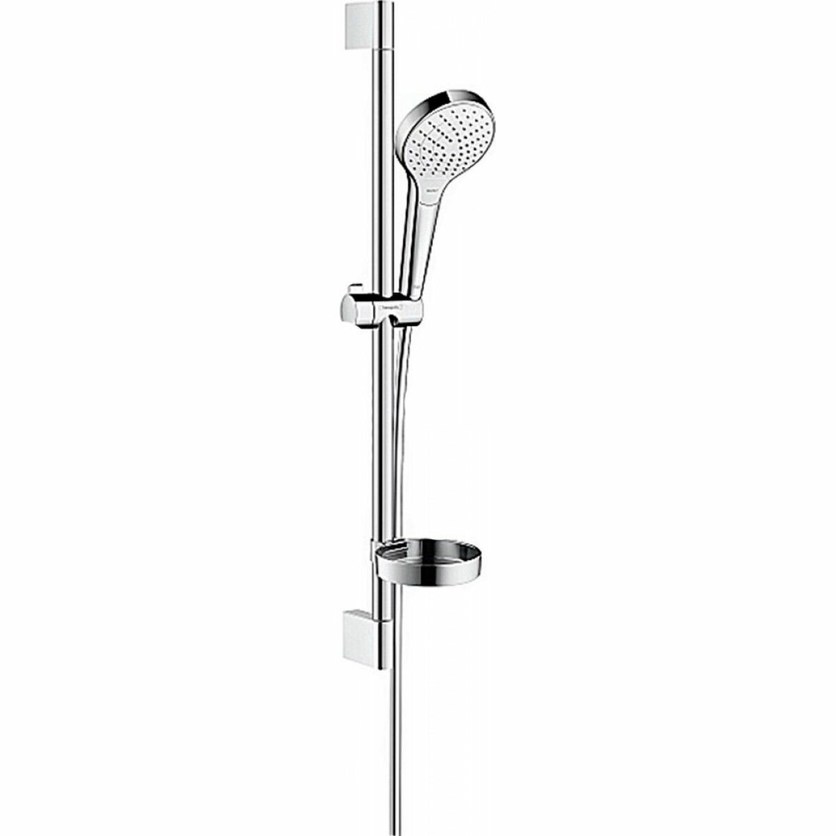 Душевой гарнитур Hansgrohe Croma Select, арт. 26566400, 3 режима, хром / белый, штанга 65 см, шланг 160 см, лейка 11 см, с мыльницей