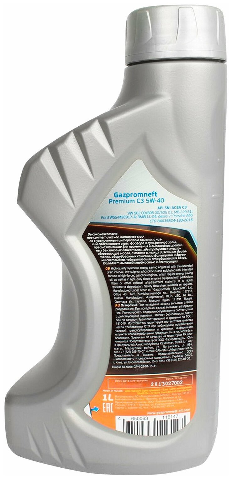 Gazpromneft Premium С3 (Классификация SAE:5W-40, Упаковка:1л)