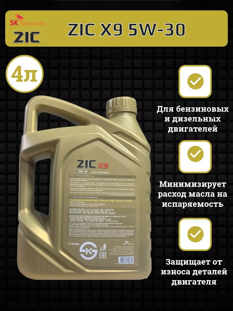 ZIC 162614 ZIC X9 5W30 (4L)_масло моторное! синт.\API SL, ACEA A3/B3/B4, BMW LL-01, VW 502.00/505.00, MB 229.5