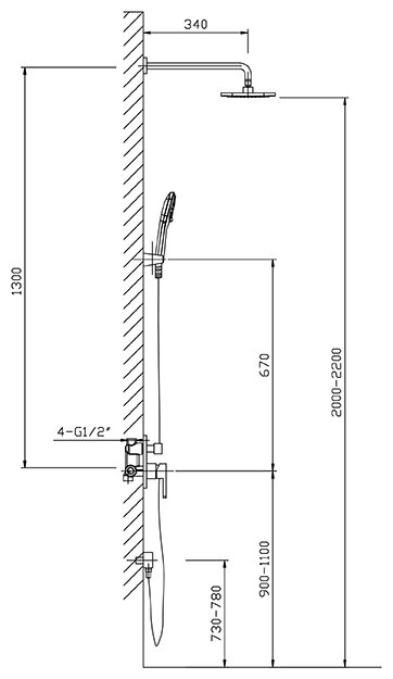 | Дополнительная информация | размер верхнего душа 290 x 190 мм; угол наклона верхней лейки регулируется; посадочная глубина скрытой части смесителя: 60-70 мм |