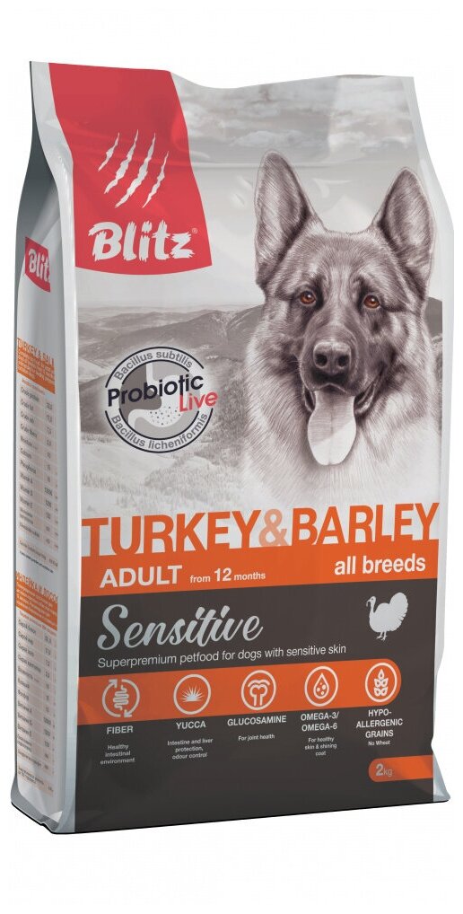 BLITZ SENSITIVE ADULT ALL BREEDS LAMB & RICE для взрослых собак всех пород с ягненком и рисом (2 кг)