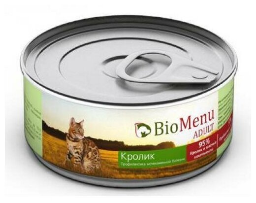 BioMenu ADULT Консервы д/кошек мясной паштет с Кроликом 95%-мясо 100гр x 24 шт