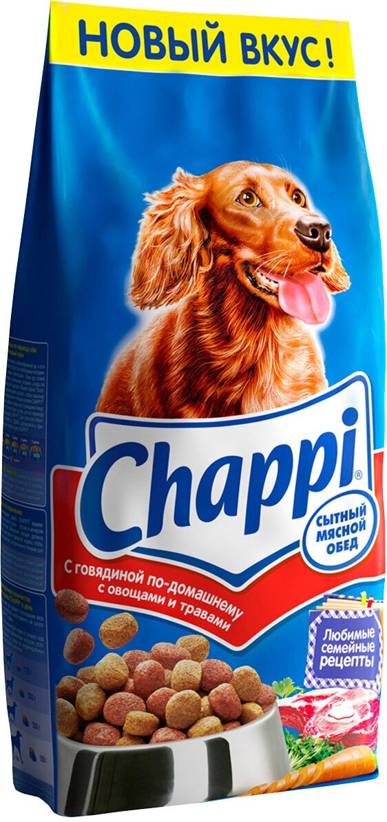 Сухой корм для собак Chappi "Сытный мясной обед" с говядиной по-домашнему, овощами и травами 15кг
