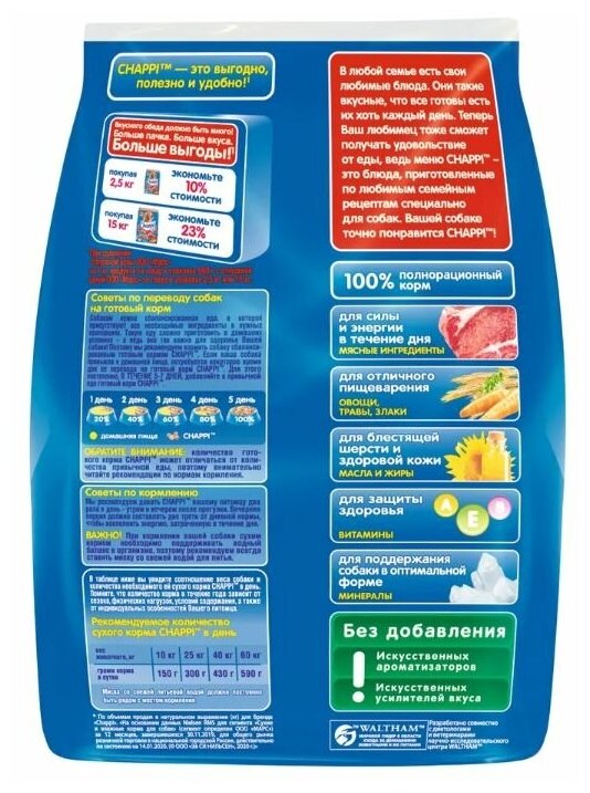 Chappi Сухой корм для собак с говядиной сытный мясной обед 6423 2,5 кг 11599