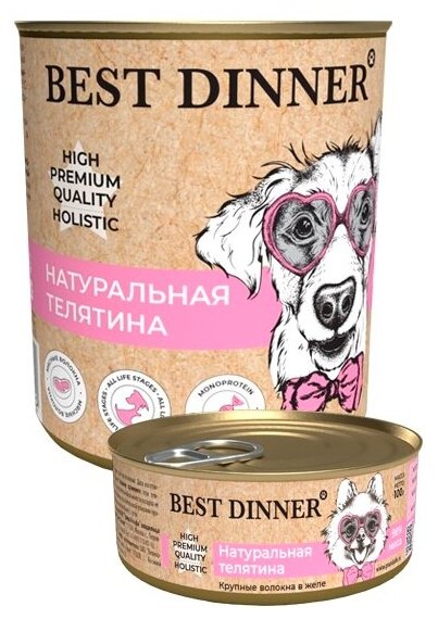 Best Dinner Бест Диннер консервы для собак High Premium, Натуральная телятина, 340 гр. по 6 шт.