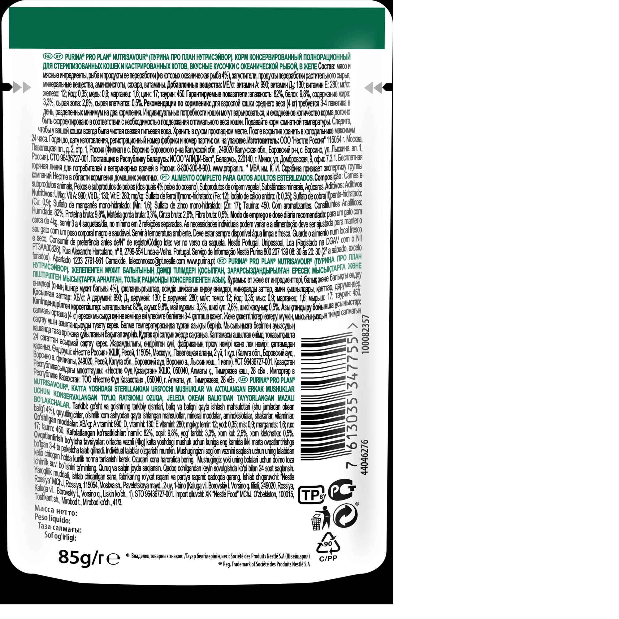 Pro Plan Sterilised Cat CiJ 85г Пауч Влажный корм для кошек Океаническая рыба вкусные кусочки в желе.Цена за упаковку,в упаковке 12шт(12шт х 85г)