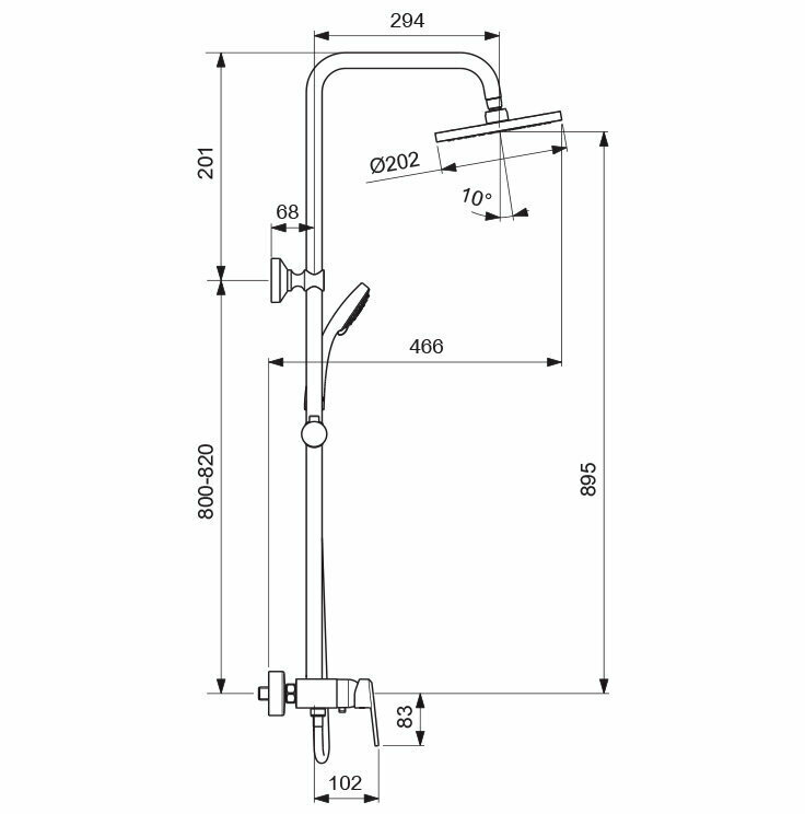 | Дополнительная информация | высота стойки для душа: 1021 мм; диаметр верхнего душа: 202 мм |