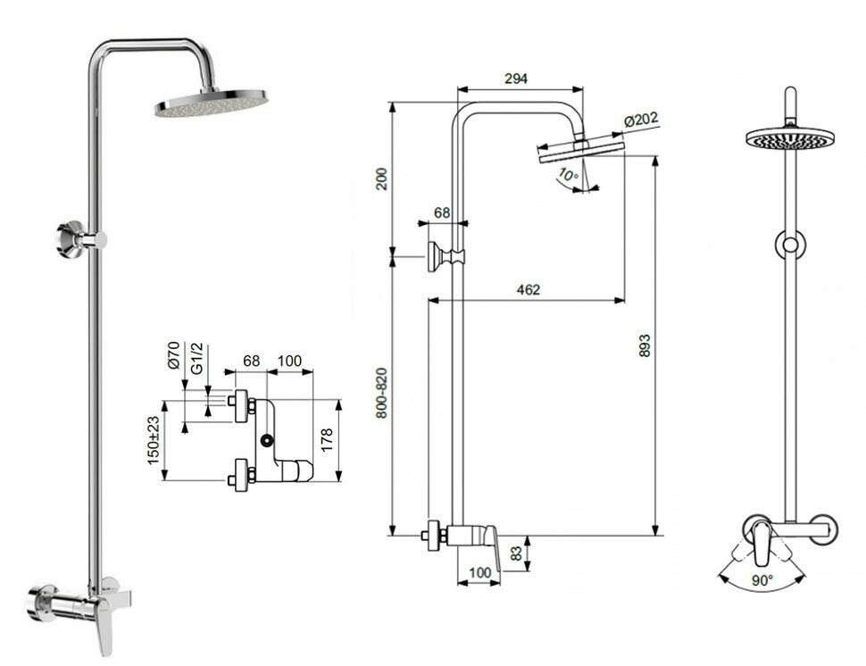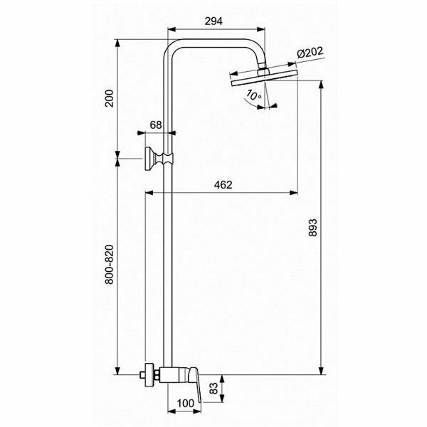 | Дополнительная информация | высота стойки для душа: 1020 мм; диаметр верхнего душа: 202 мм |