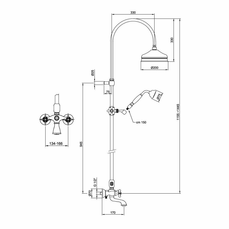 | Дополнительная информация | высота стойки для душа: 1445 мм; диаметр душевой лейки: 75 мм; диаметр верхнего душа: 200 мм |