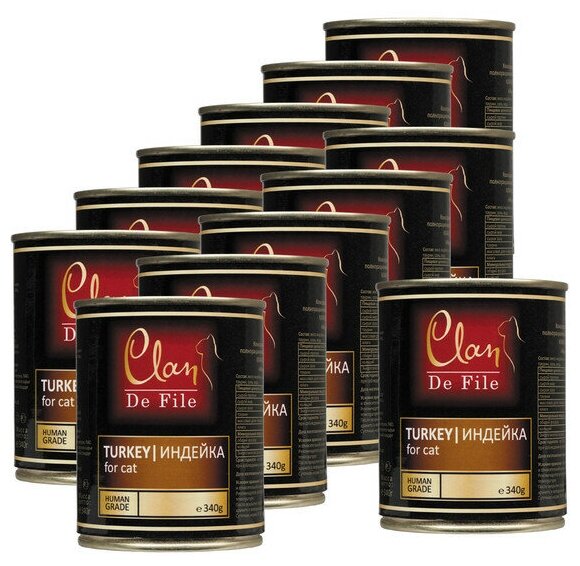 Влажный корм для кошек CLAN de File, беззерновой, с индейкой 12 шт. х 340 г
