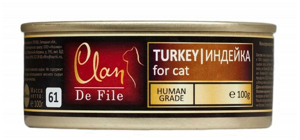 Купить CLAN De File консервы для кошек 100г Индейка