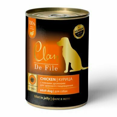 CLAN DE FILE монобелковые для взрослых собак с курицей и пивными дрожжами (340 гр х 12 шт)