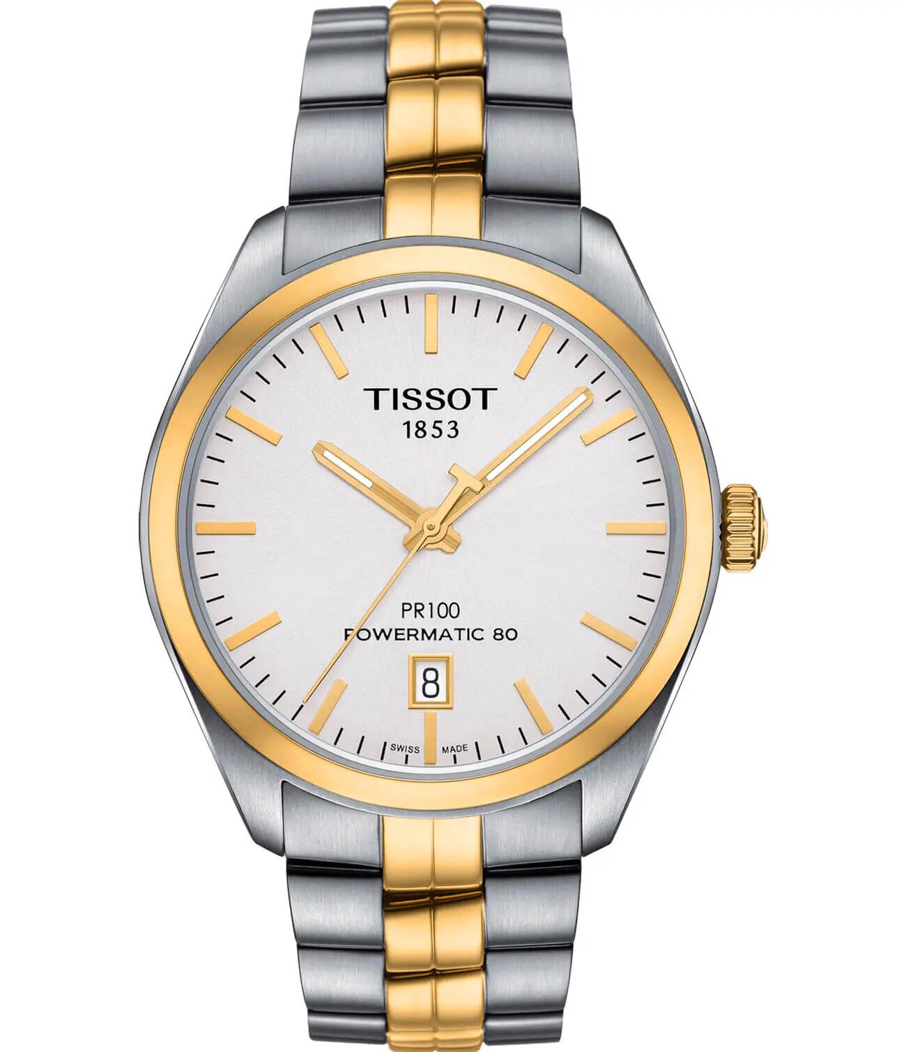 Швейцарские механические часы с автопозаводом Tissot PR 100 Powermatic 80 T101.407.22.031.00 на стальном браслете, с водозащитой 10 бар и международной гарантией от производителя