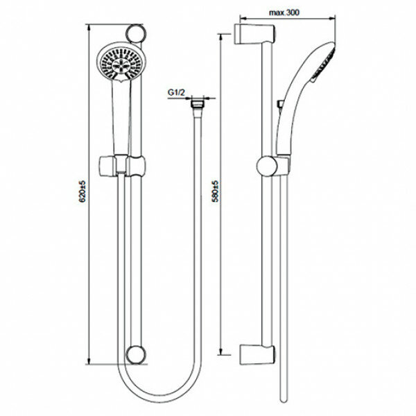 | Дополнительная информация | высота стойки для душа: 600 мм; диаметр душевой лейки: 80 мм |