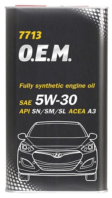 Масло MANNOL O.E.M. for Korean cars HYUNDAI KIA 5w30 API SN/SM/SL ACEA A3 ILSAC GF-5 (1л) синтетика металл 7713