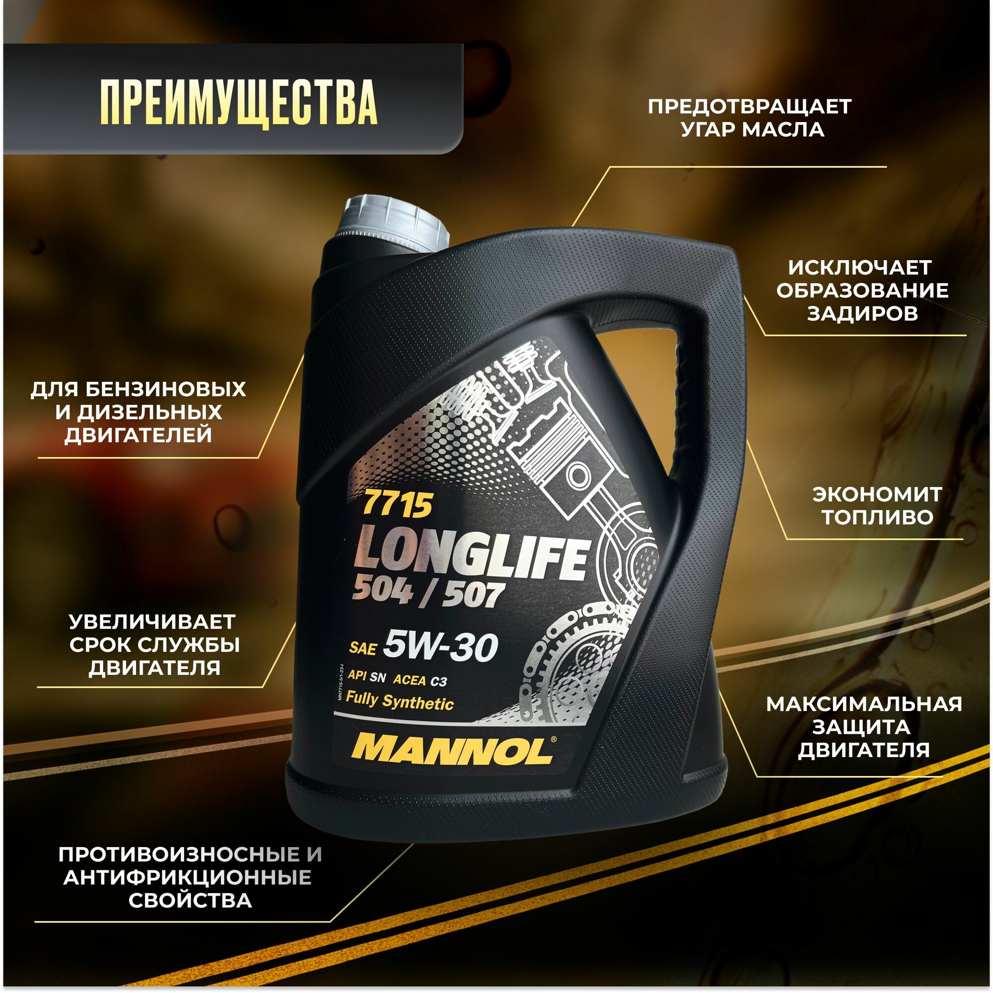 MANNOL MN7715-5 7715-5 MANNOL LONGLIFE 504507 Синтетическое моторное масло 5W-30 SNSMCF 5л