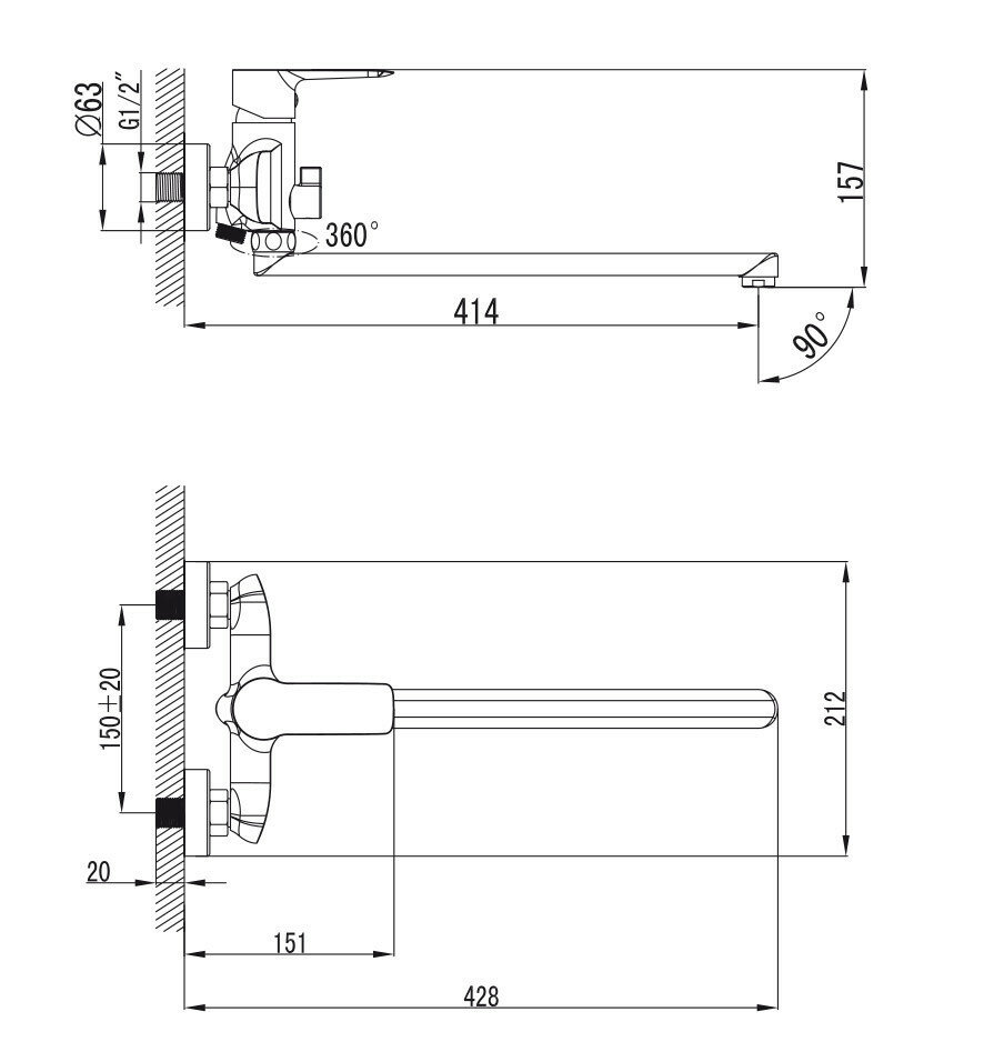Смеситель для ванны Kaiser Sena 74155 универсальный Хром
