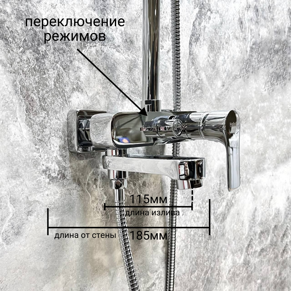 Душевая система Haiba HB2401, излив служит переключателем на лейку, хром