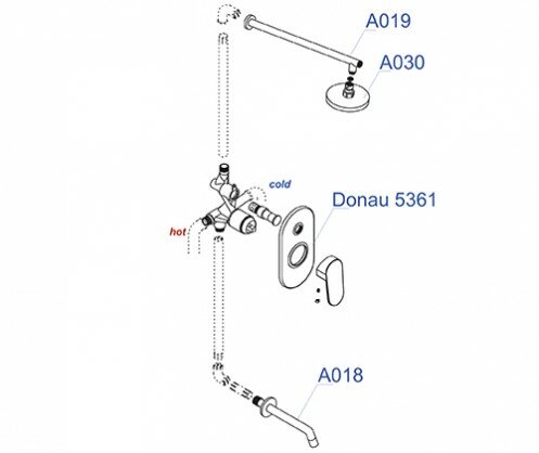 Donau A13030 Встраиваемый комплект для ванны/душа WasserKRAFT хром