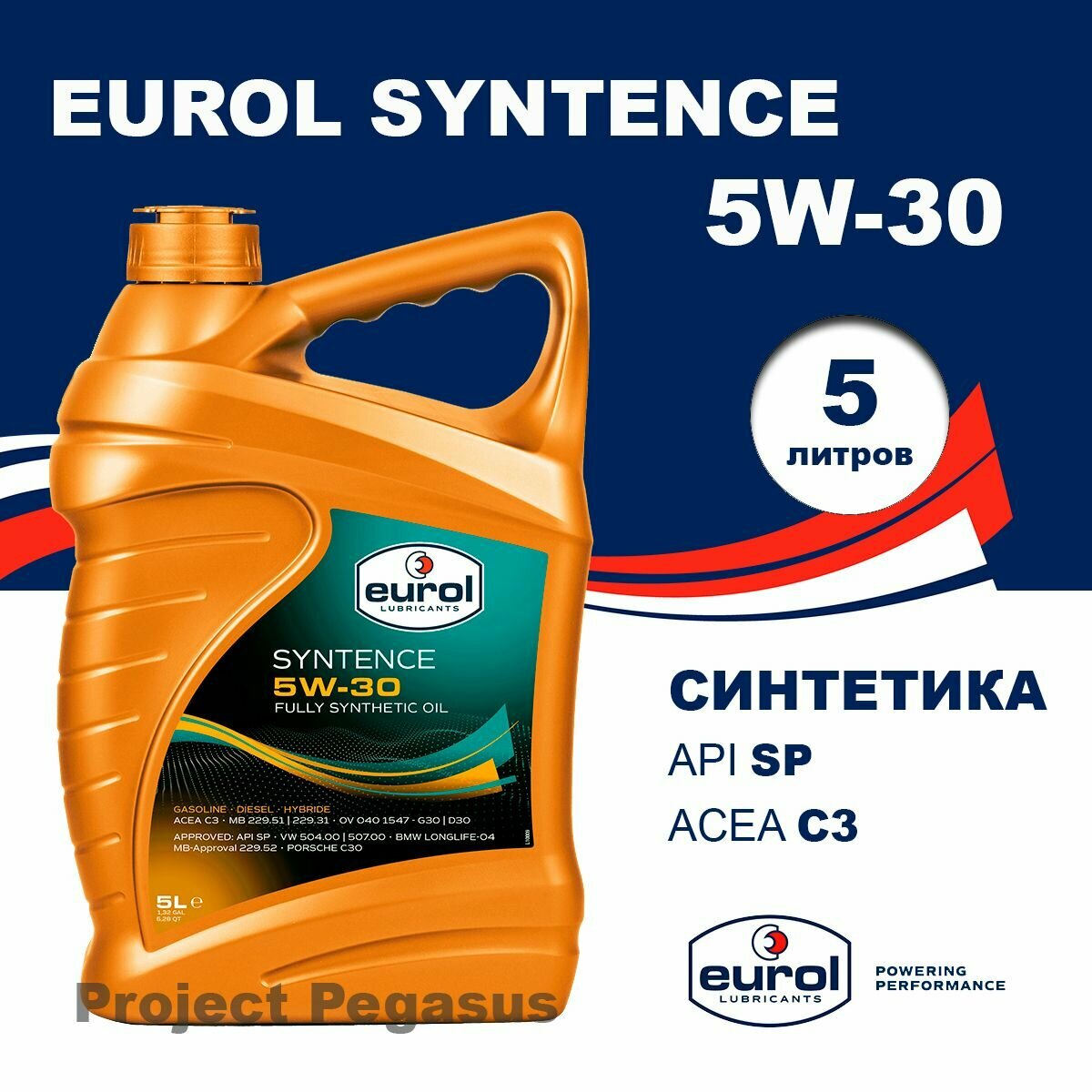 Синтетическое моторное масло Eurol Syntence 5W-30 SL/CF, VW 504/507 - C3, 5 л.
