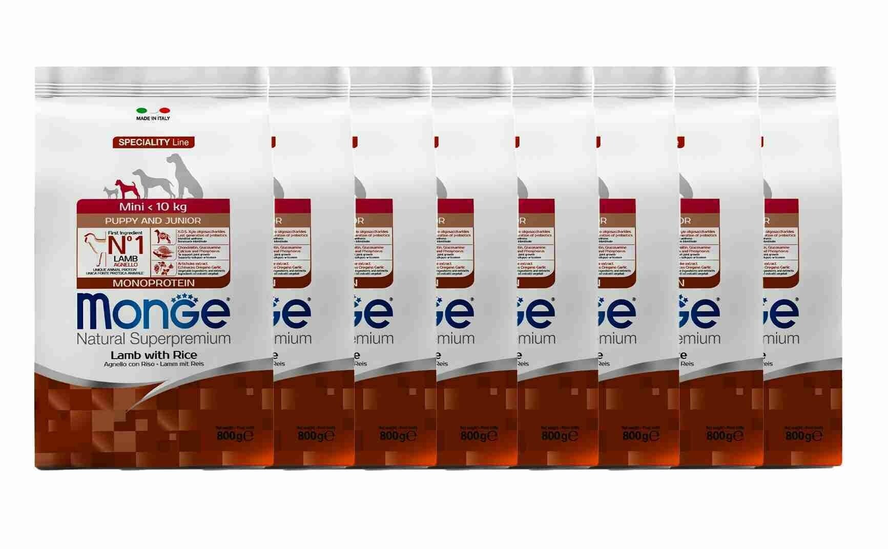 Сухой корм для щенков Monge Speciality line, ягненок, с рисом, с картофелем 8 шт. х 800 г (для мелких пород)
