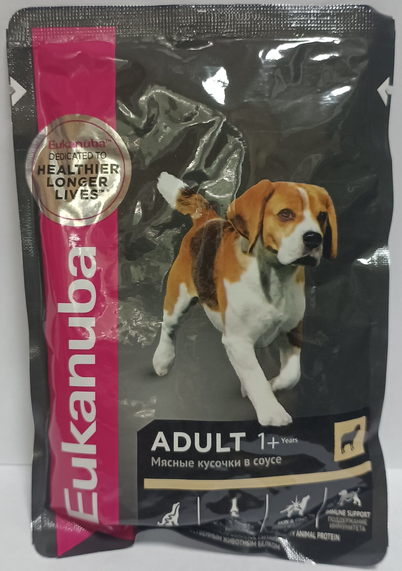 Влажный корм для собак Eukanuba Adult 1+ years, для здоровья кожи и шерсти, c ягненком, 100 г (кусочки в соусе)