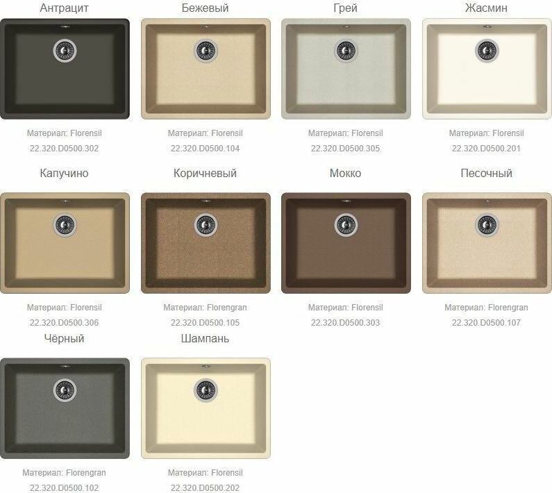Florentina кухонная мойка вега 500 Жасмин 22.320.D0500.201
