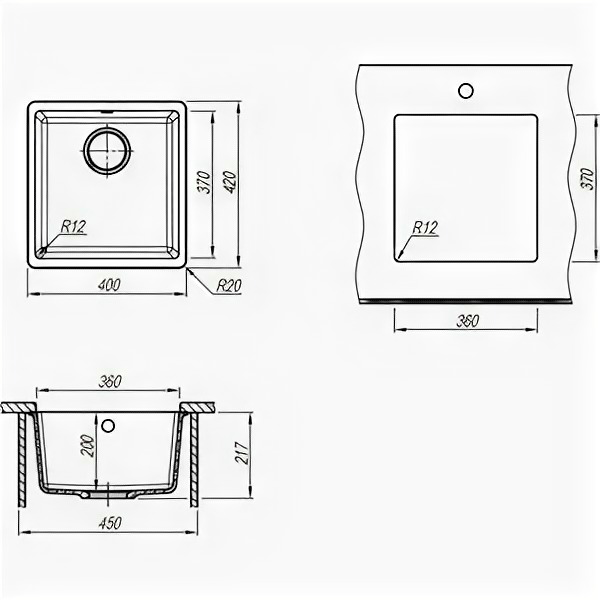 Мойка FLORENTINA Вега 360 FS (400х420х217) антрацит , для подстольного монтажа, Florensil metallic