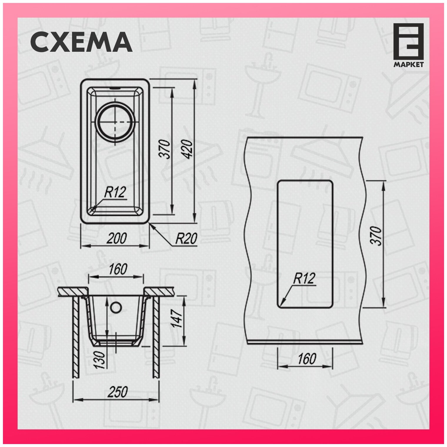 Мойка кухонная Florentina Вега 160 200х420х147 Антрацит