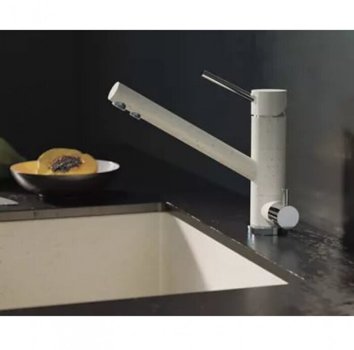 Только сугубо личные ощущения, был выбран хром в надежде реже чистить. Но увы! На нем ещё больше видны капли и следы от воды, ухода ещё больше, чем к примеру за белым каменным. И не учла при покупке, что кран к установке на правый край. Пользоваться краником для фильтра не удобно. А так тяжёлый, на вид добротный смеситель. |