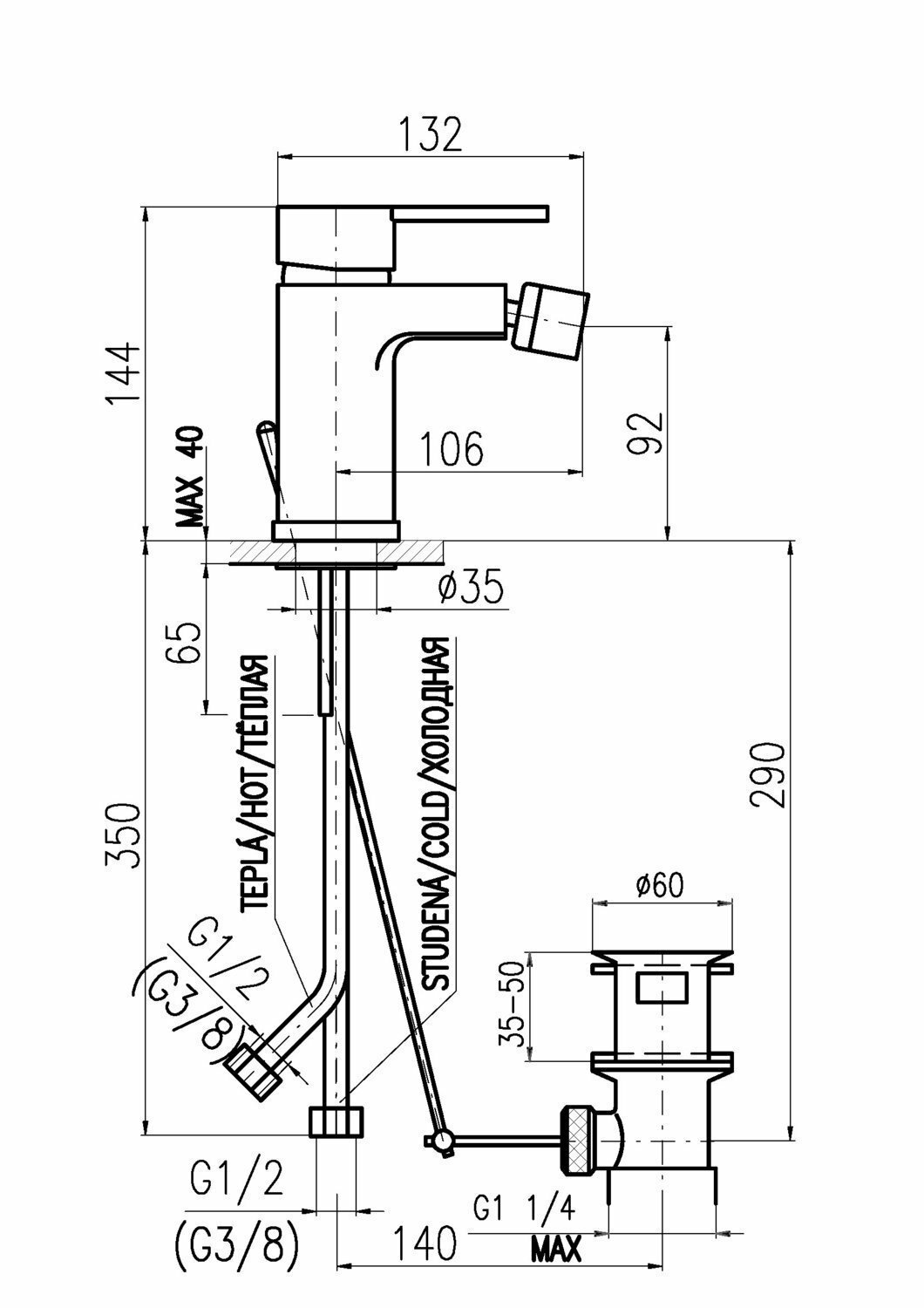 ZA045.5 ZAMBEZI - смеситель для биде, донный клапан (пластик) RAV Slezak