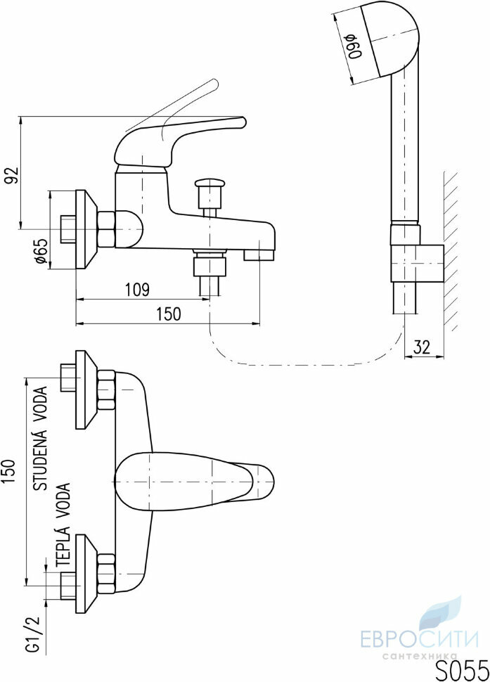 SA054.5/1 SAZAVA - смеситель для ванны, душ RAV Slezak