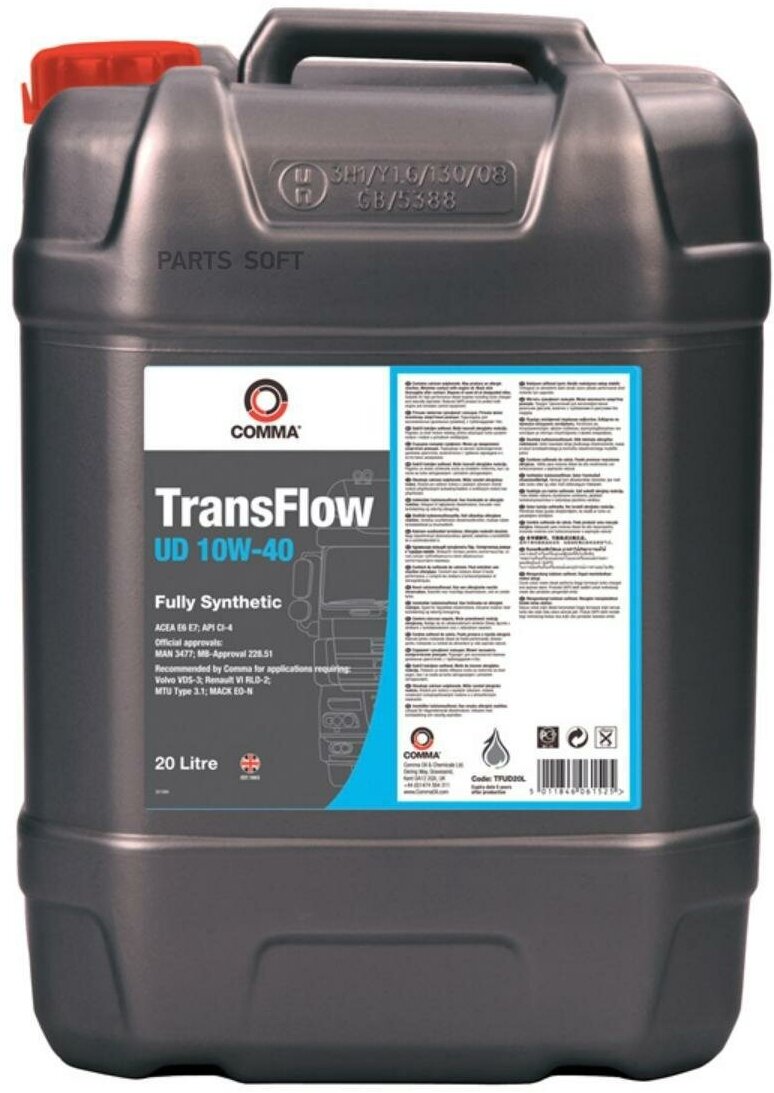 Comma 10w40 Transflow Ud (20l)_масло Моторное! Синт Acea E6/E7, Man 3477, Vds-3, Mb 228.51, Rld-2 COMMA арт. TFUD20L