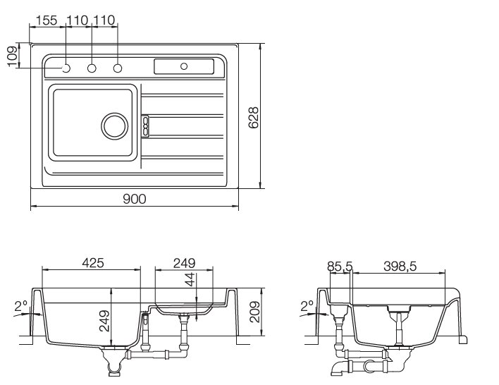 Врезная гранитная кухонная мойка 90 см, Grando 90 Schock Шок