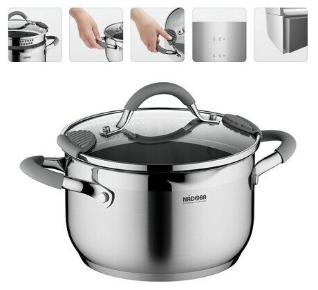Купить Набор посуды со стеклянными крышками, 6 пр., NADOBA, серия NITA кастрюля со стеклянной крышкой, 24 см/6,1 л; кастрюля со стеклянной крышкой, 20 см/3,6 л; ковш со стеклянной крышкой, 16 см/1,7л