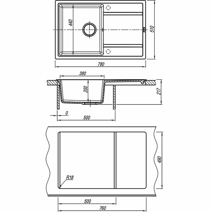 Мойка кухонная Florentina Лотос 780 780х510х217 Антрацит