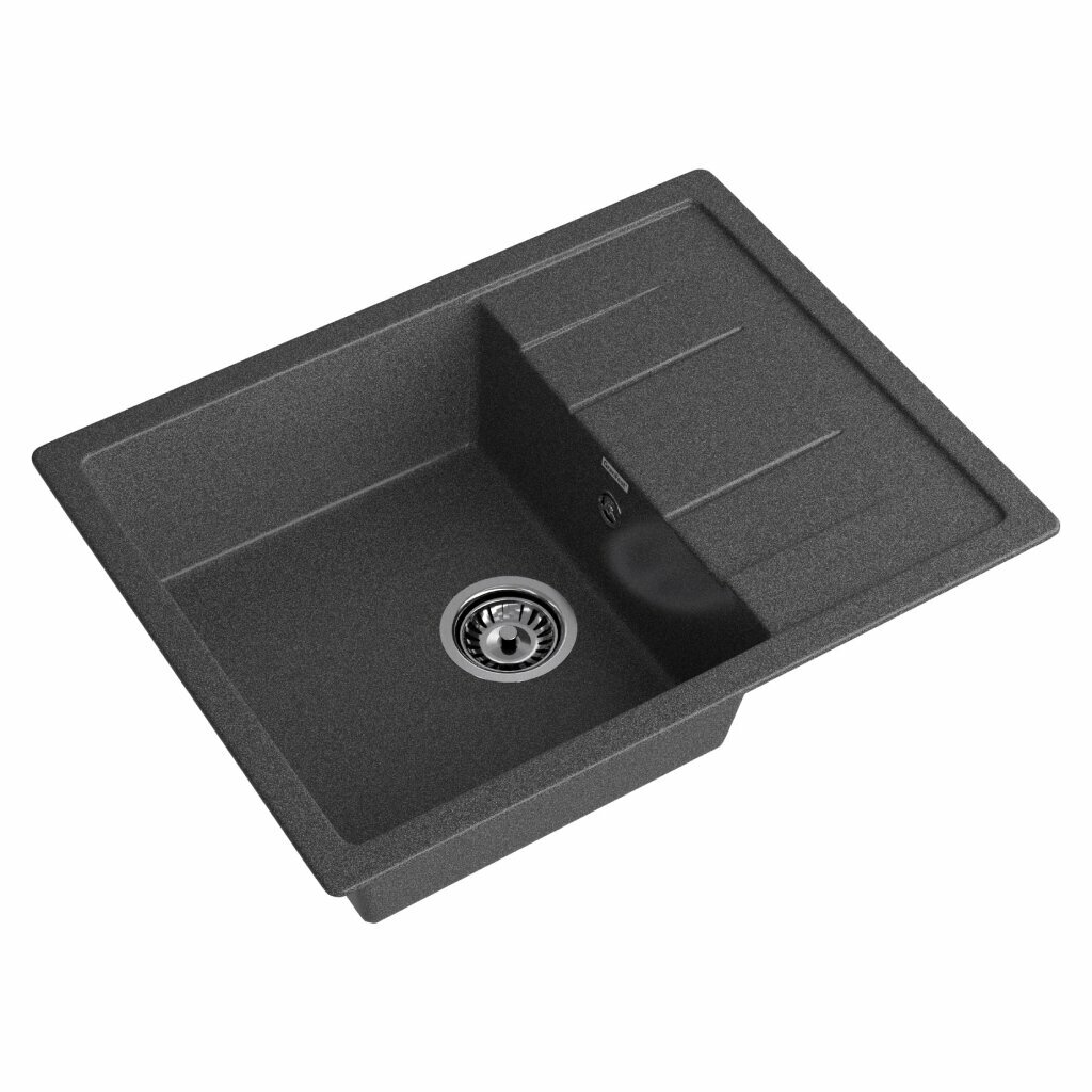 Мойка кухонная врезная, GranFest, Quadro, искуственный мрамор, 650х500 мм, + сифон, черная, GF-Q650L