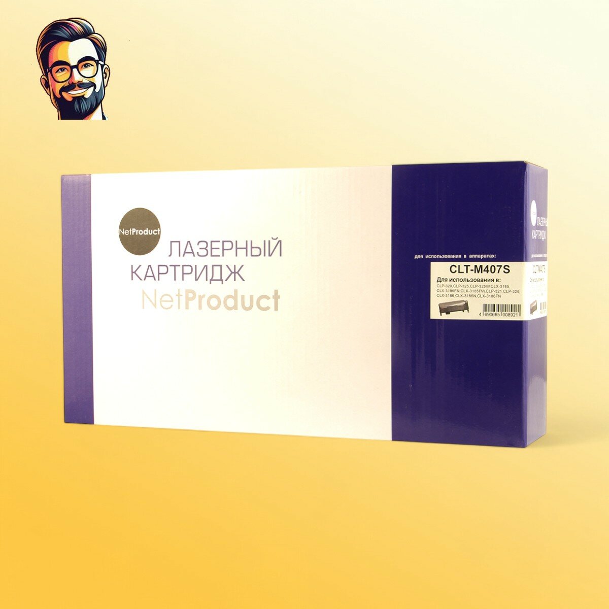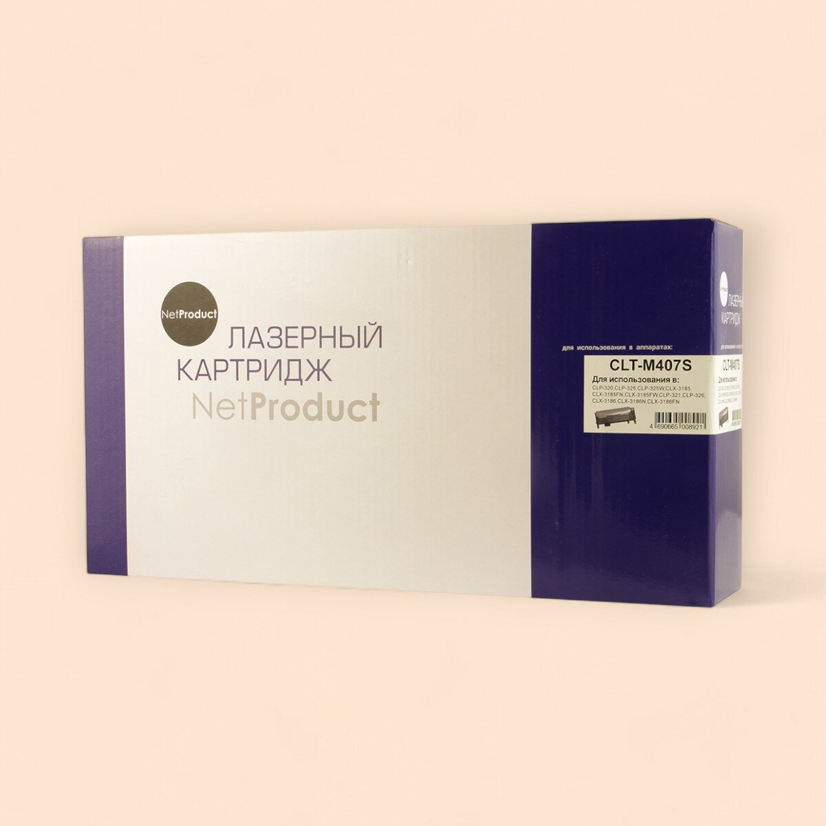 Тонер-картридж NetProduct CLT-M407S для Samsung CLP-320/320n/325/CLX-3185, M, 1K, пурпурный, 1000 страниц