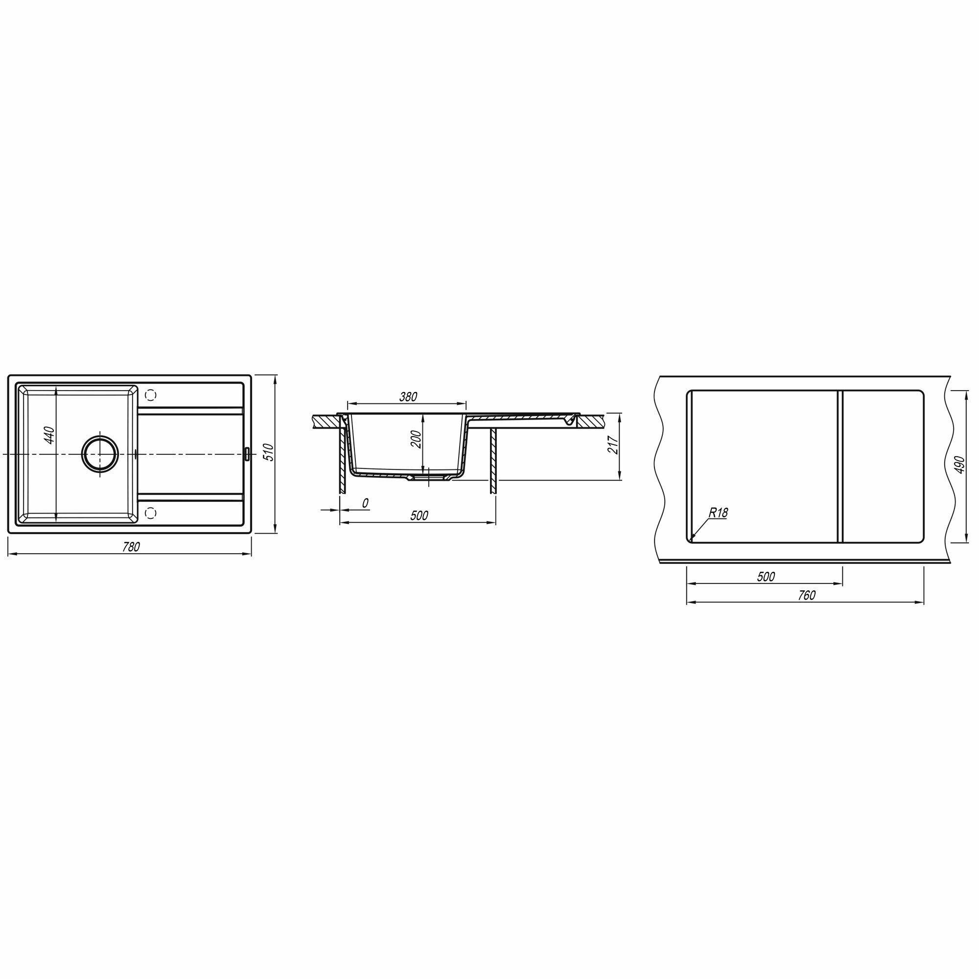Кухонная мойка Florentina ЛИПСИ-780 Черный Искусственный камень